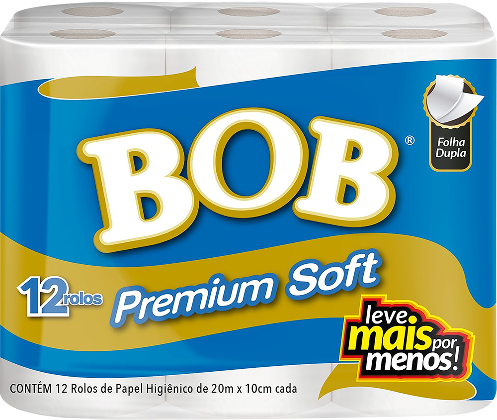 Papel Higiênico BOB Premium Soft Folha Dupla 12 Rolos 20m