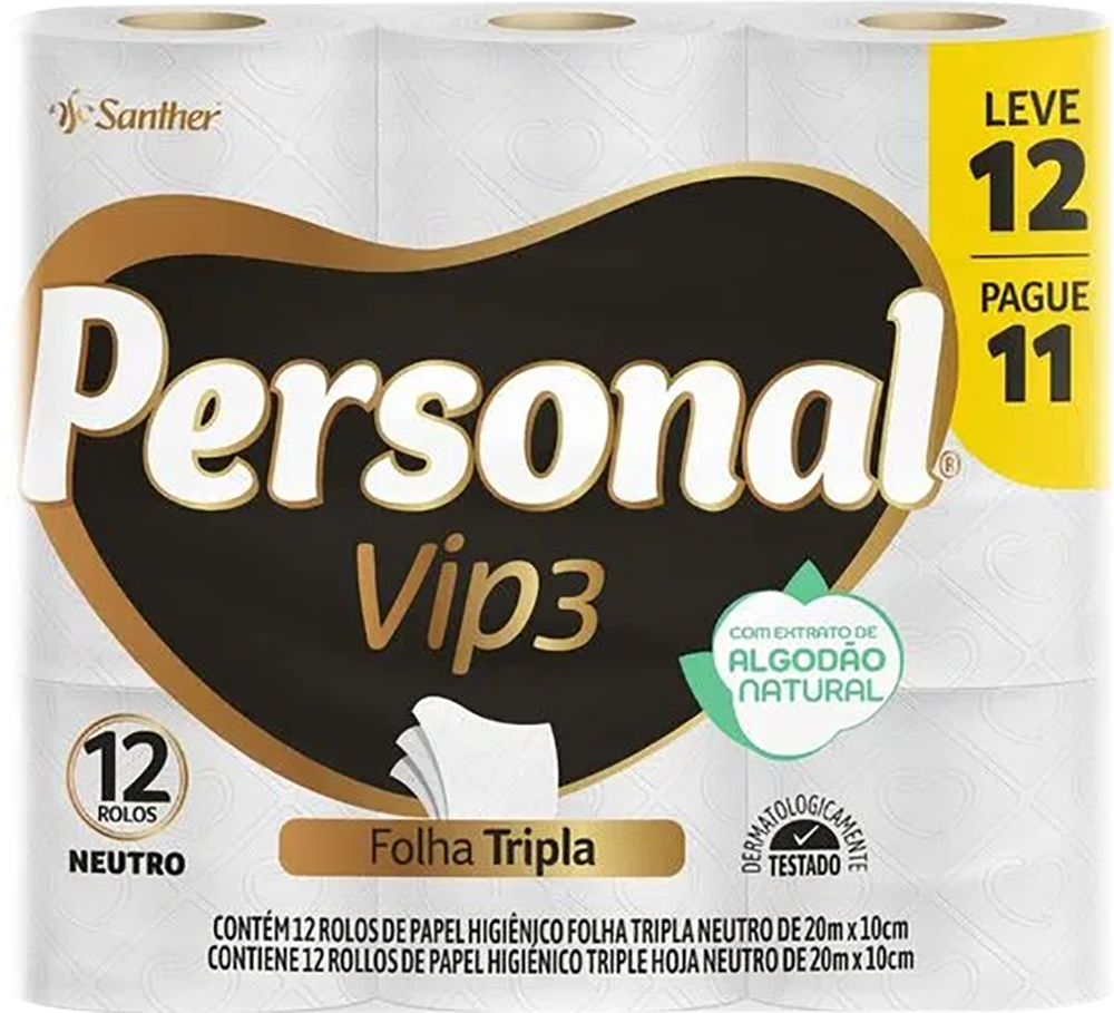 Papel Higiênico PERSONAL VIP 3 – Folha Tripla – Leve 12 Pague 11